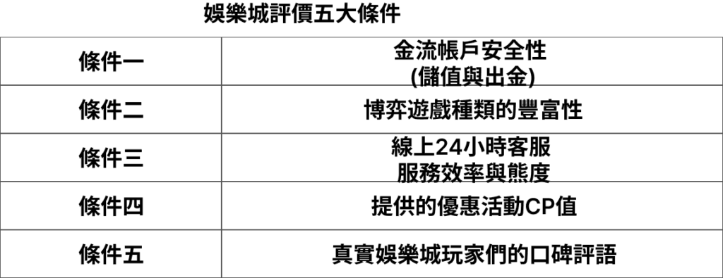 ( 娛樂城評價條件表|想要測評娛樂城的優缺點,這五大評價條件一定要納入參考 )