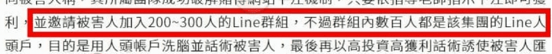 帶大家打百家樂賺錢,一開始都會讓你先贏一些錢,等你投注大把資金後,就不會出金給你了。更令人咋舌的是,連分享在line群組的高獲利圖,都是用修圖軟體修來的,而群組裡那些時常跟隨老師喊話的,其實也都是詐騙集團的人頭帳戶。
